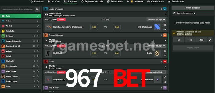O 967 Bet oferece uma grande seleção de opções de apostas em e-sports com probabilidades competitivas